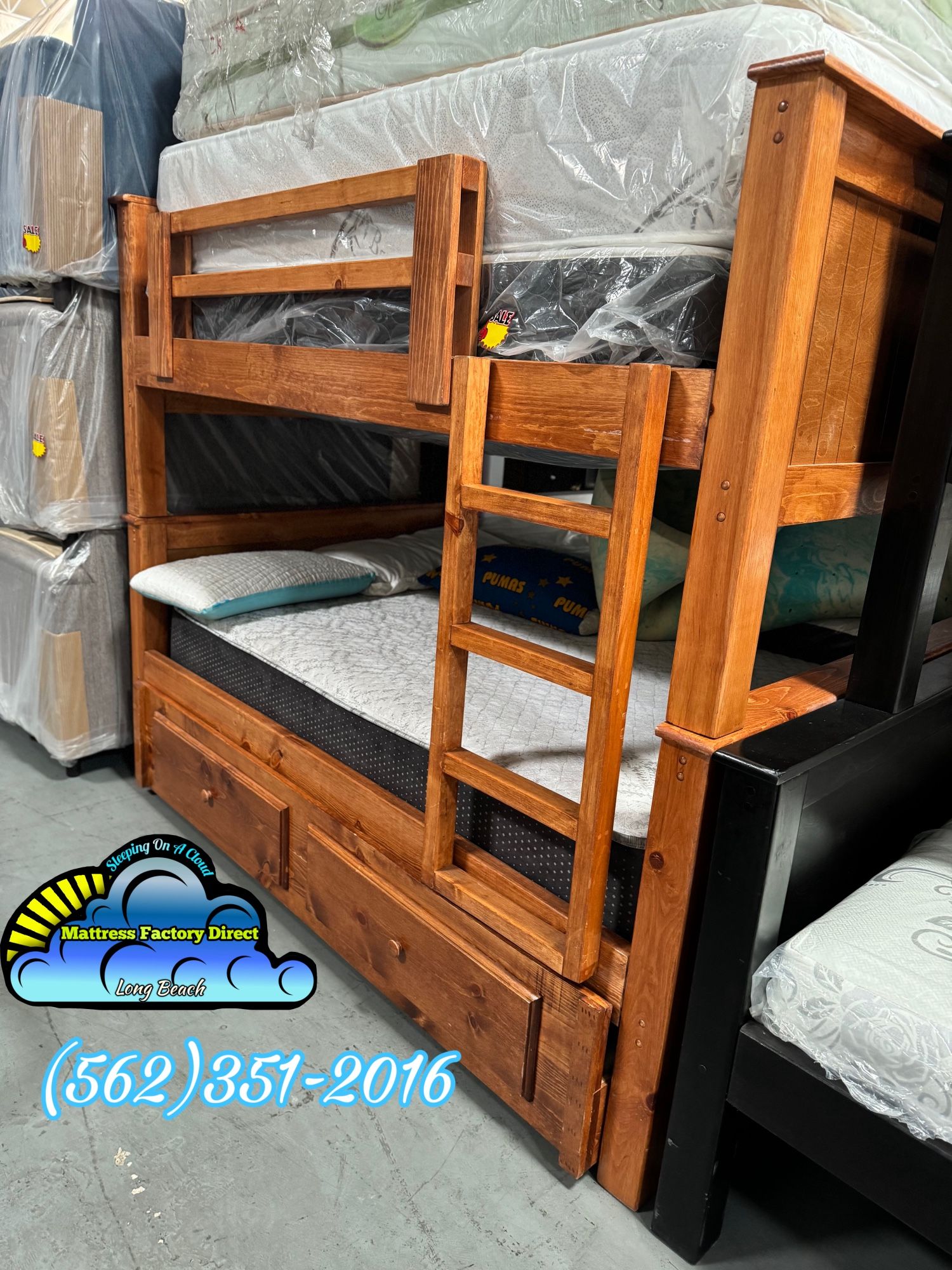 Triple Full Oak Litera Bunk Bed Mattresses Nuevo