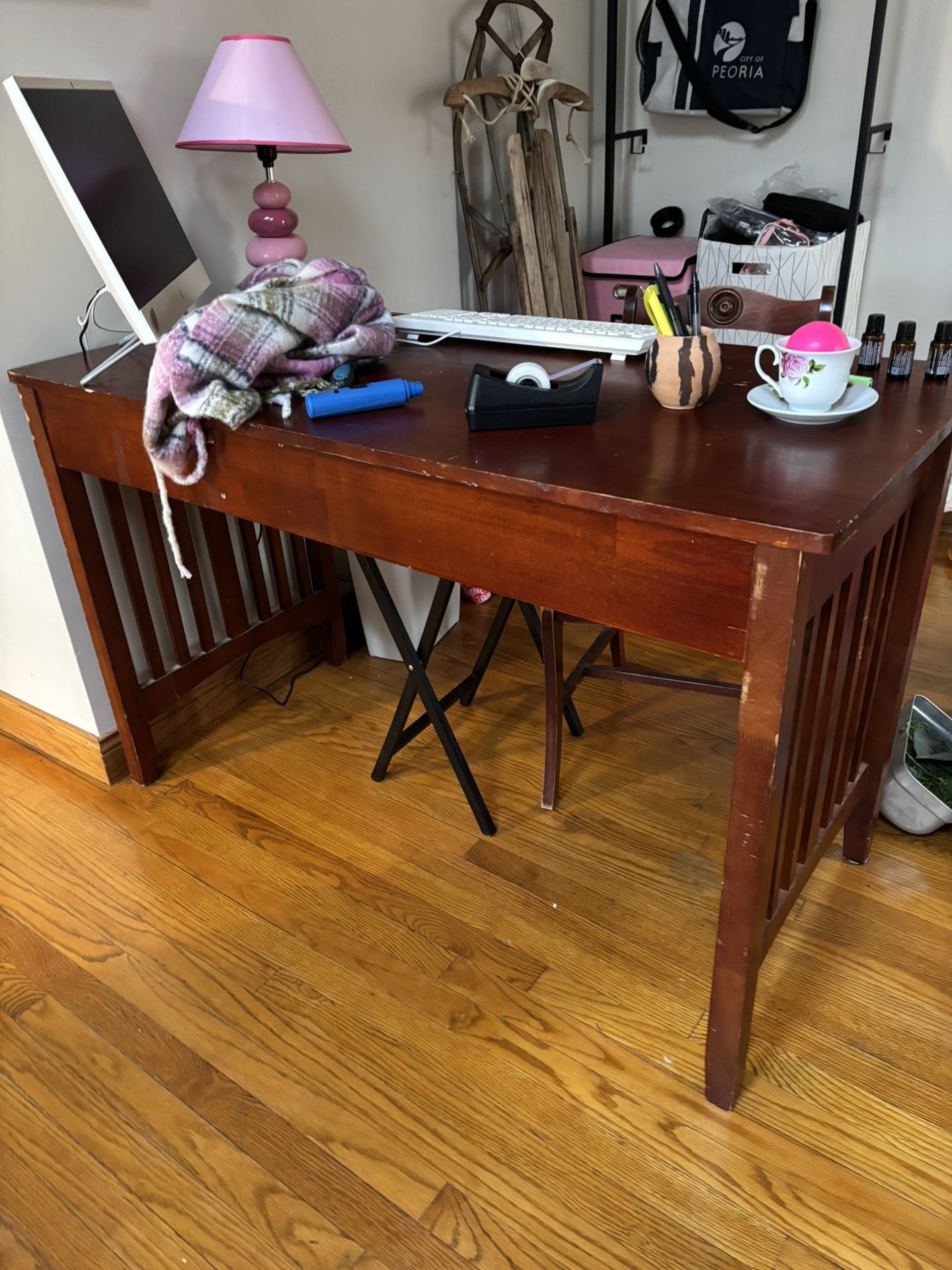 Cherry wood desk. Antique. 25 inches wide; 53 inches long