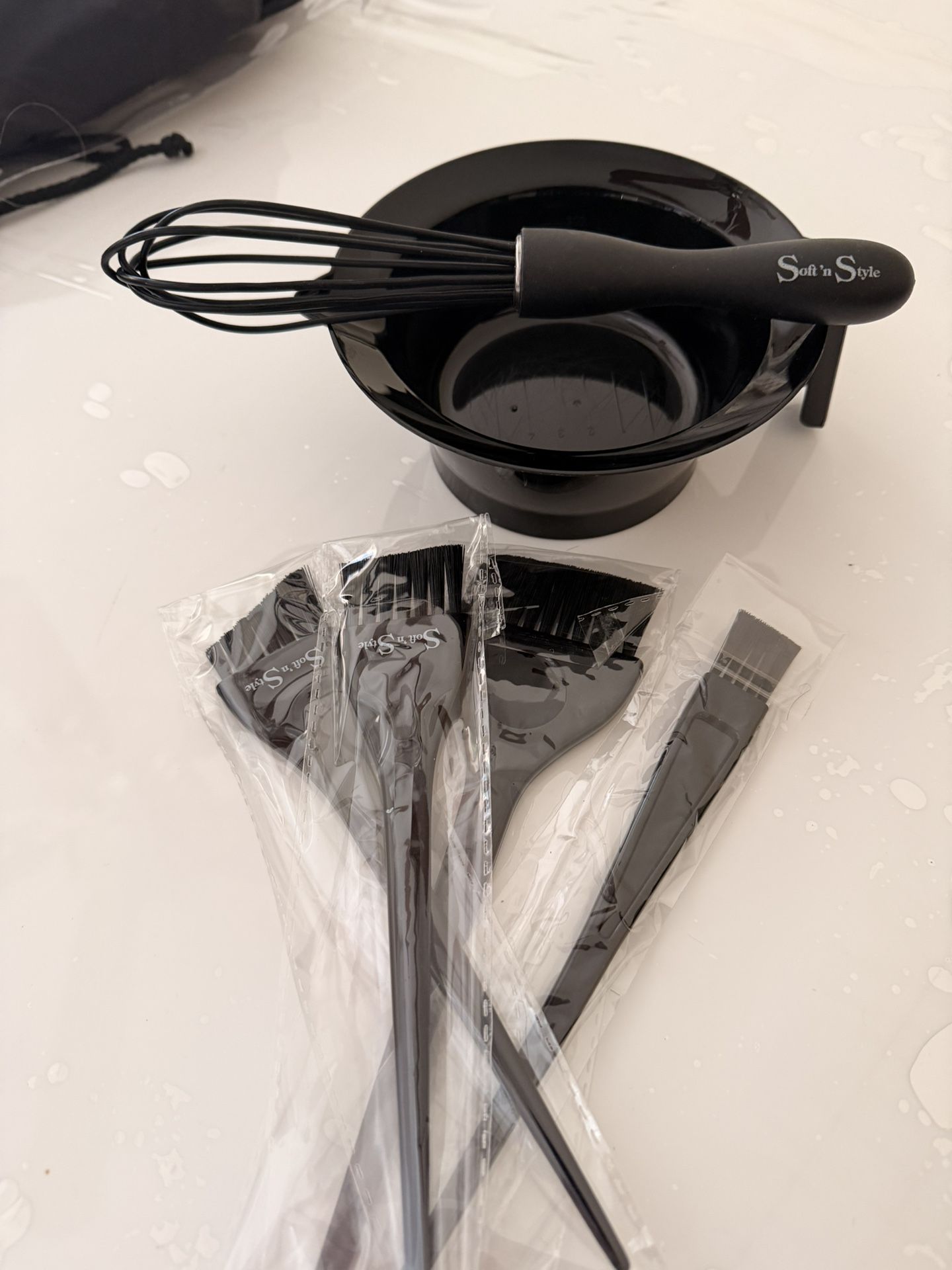 balayage board with brushes, bowl and whisk