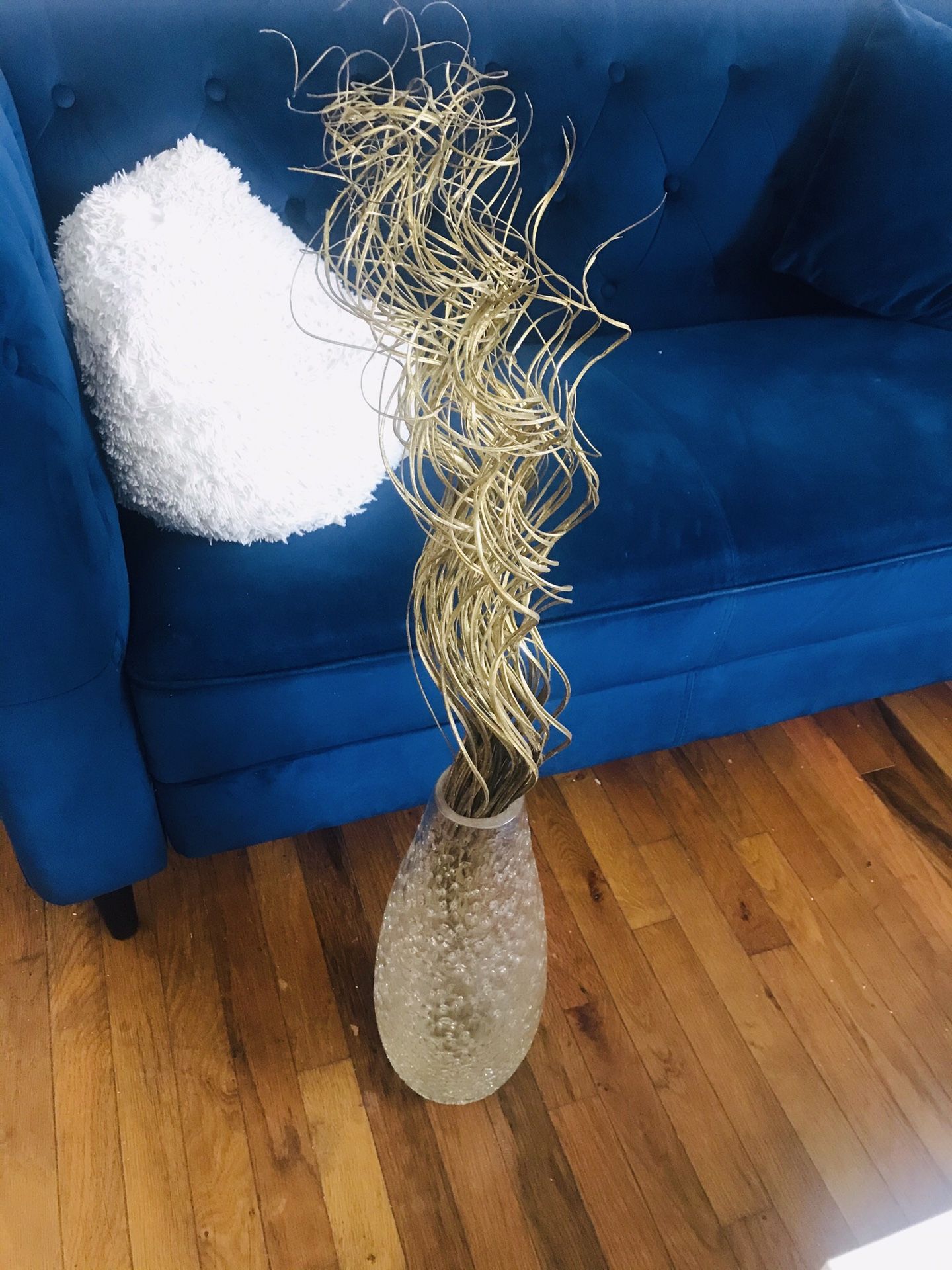 Beautiful strong glass vase, if you want you can keep the golden decoration in there.