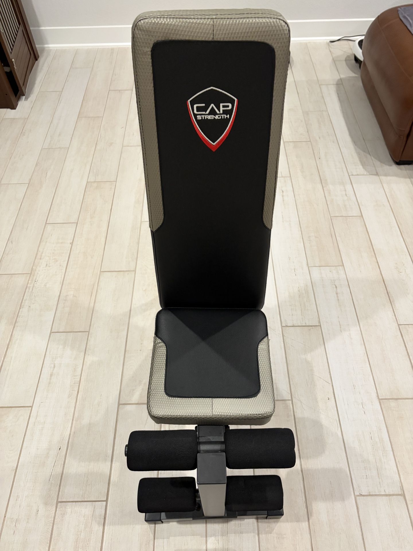 Solid CAP Strength adjustable weight bench in great condition. • Adjustable incline positions • Leg support rollers for decline exercises • Sturdy steel frame • Comfortable padded cushions • Perfect for dumbbell or barbell workouts Great addition to a home gym.