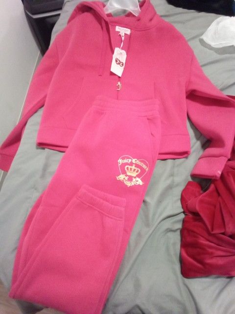 Hot Pink Juicy COUTURE, SWEAT SUIT. WOMANS SIZE XL!! WITH HOODIE. NON-WID LEG CLOSED CROP ANKLE BOTTOM. Original price $199.90- I won't even ask for half of that!! I got y'all on a deal for XMAS!