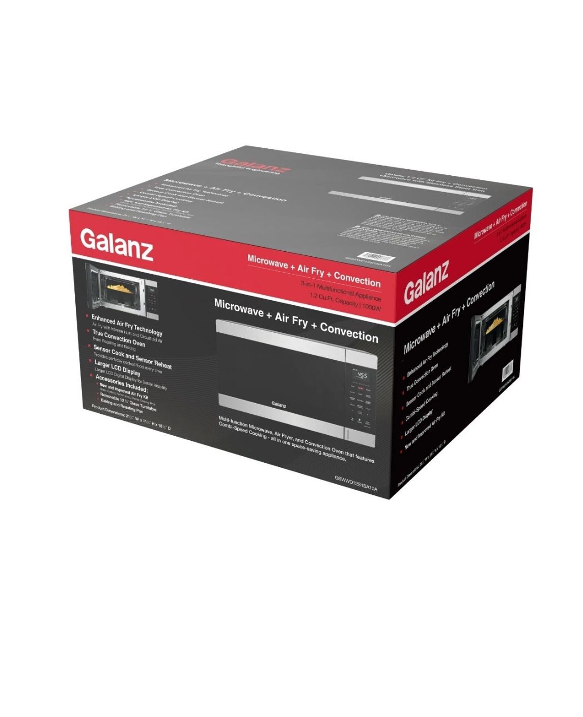 Galanz 0.9 Cu ft Air Fry Countertop Microwave, 900 Watts, Stainless Steel, New