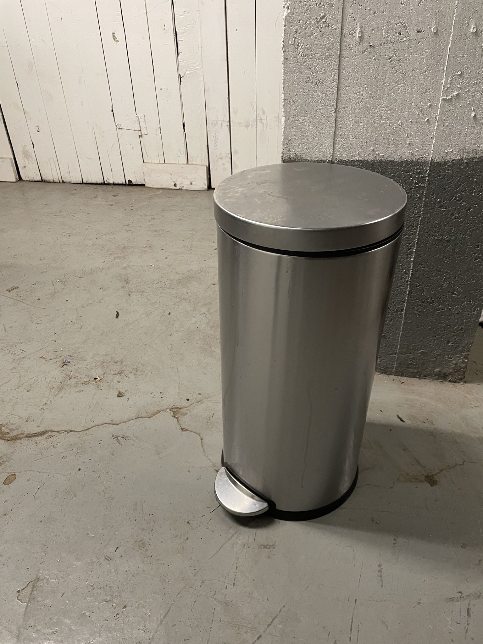 2 Nice Kitchen Garbage Cans, Smart Human, 1 Black 1 Polished Metal