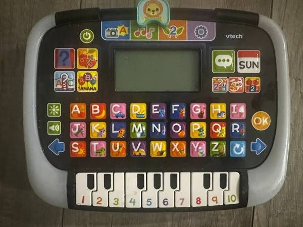 Piano Letters and Numbers. Best for ages 2 and up. Playful animations and sound effects pair with 12 learning activities to engage little learners. Explore apps and play modes that teach letters, words, numbers, counting, puzzles and more. Play songs and sound effects on the piano while pressing the piano keys. Have a conversation with the friendly lion. Respond to questions about what you like and try to guess the animal sounds. Choose from four LED screen colors, then watch the tablet glow! Take this tablet on the go to keep playful exploration right at hand. Great deal! Cash only.
