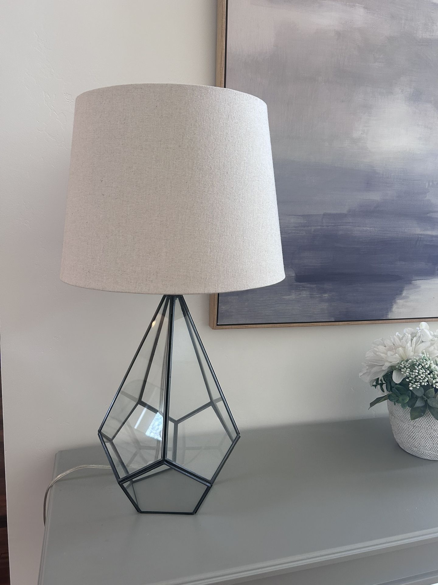Glass Table lamp. 25inch tall including shade. Selling due to international move.