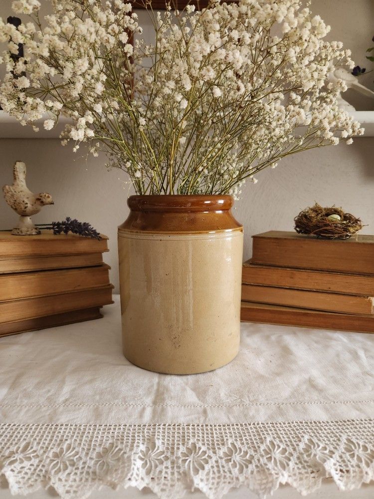 Antique English stoneware crock 6" x 8" T Charming display & decor Rustic country cottage European farmhouse decor Great for utensils, flowers, etc. Smoke-free pet-free