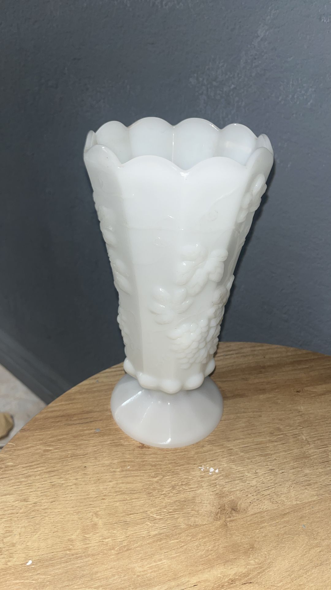 Vintage Westmoreland Milk Glass Harvest Grape Paneled Pedestal Vase