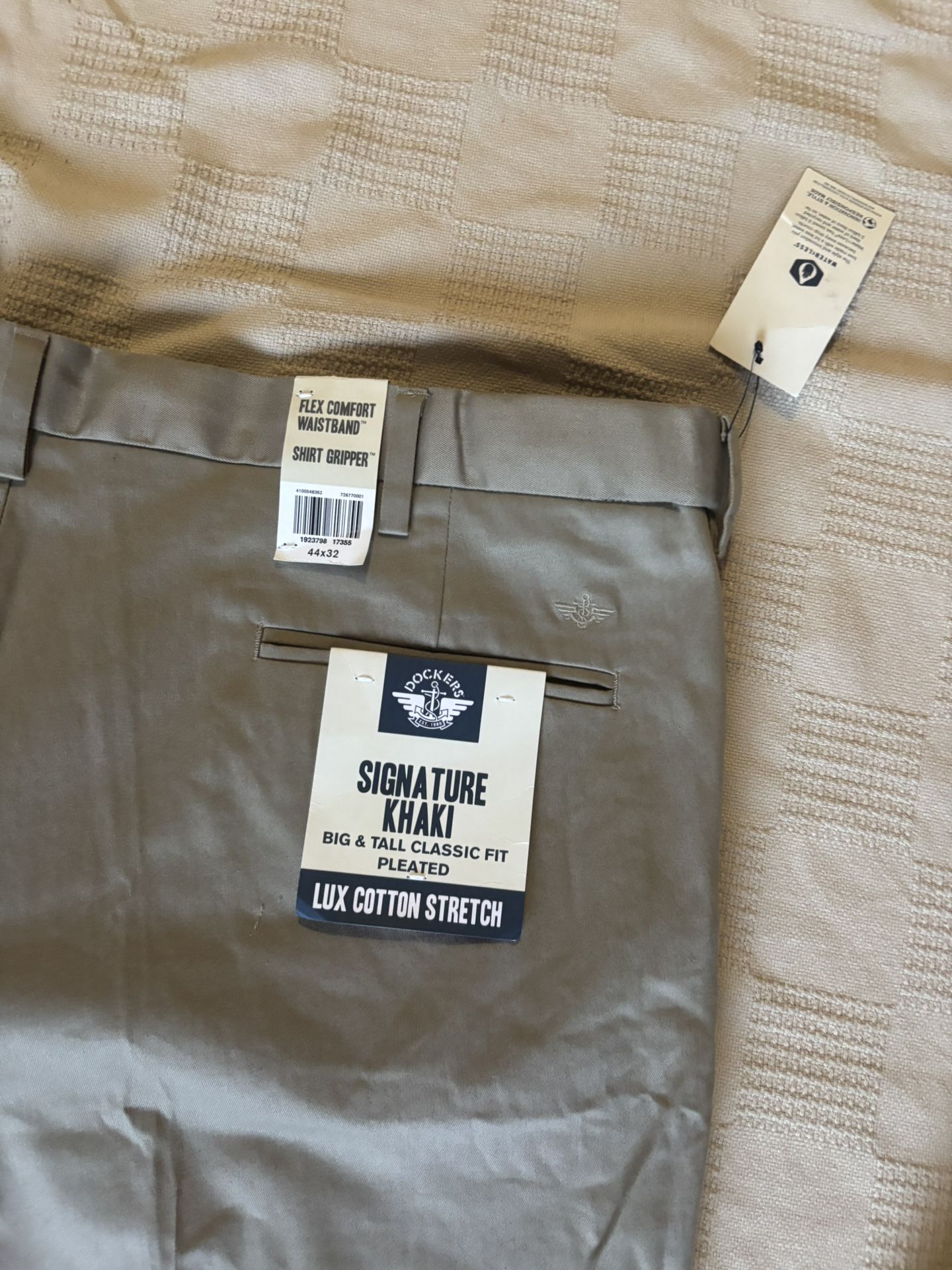 New Dockers pants size 44x32 Signature khaki Big and tall classic fit pleated Flex comfort waistband Lux cotton stretch Men dockers pants