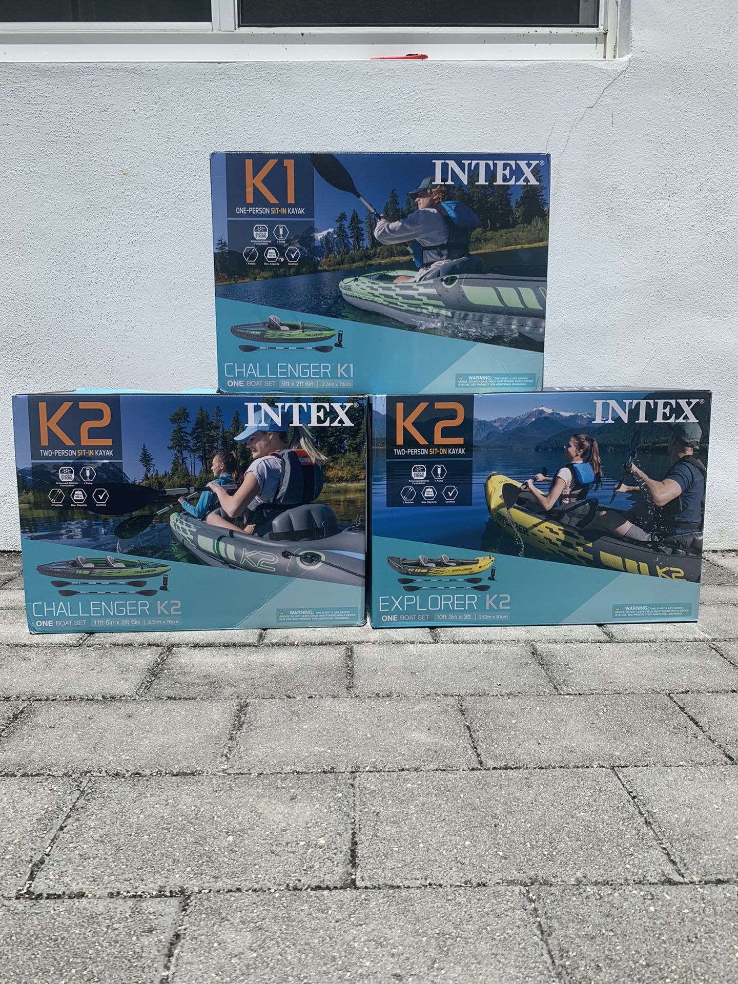 All have different prices Brand new Sealed Intex kayak K1 challenger K2 challenger K2 explorer All new and sealed Availble today Great for ocean kayaking and river kayaking