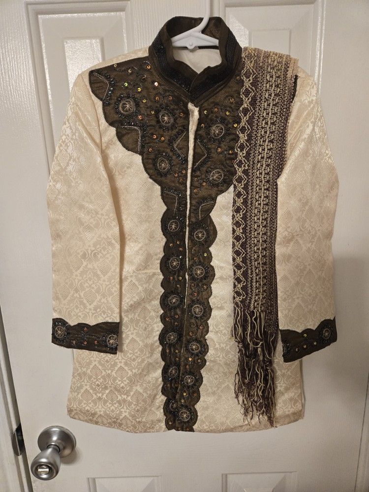 In like new condition. Sherwani top, bottoms, and scarf included. Located near Domain, but willing to meet. Cash preferred.