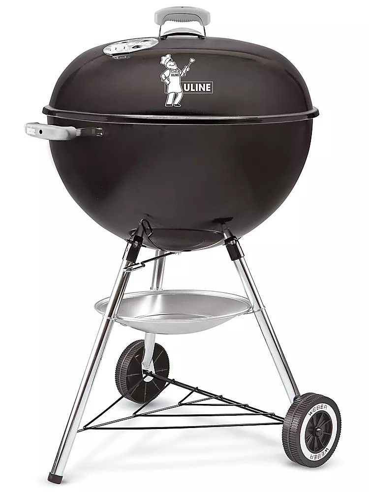 Grill Surface 22" diameter. Overall Size: 23L x 25W x 40H Weight: 33 lbs. The brand that sets the barbeque standard. Traditional backyard charcoal grill. Porcelain enamel bowl and lid. Durable steel grate is easy to clean. Aluminum vent and ash catcher. Original Kettle™ Grill