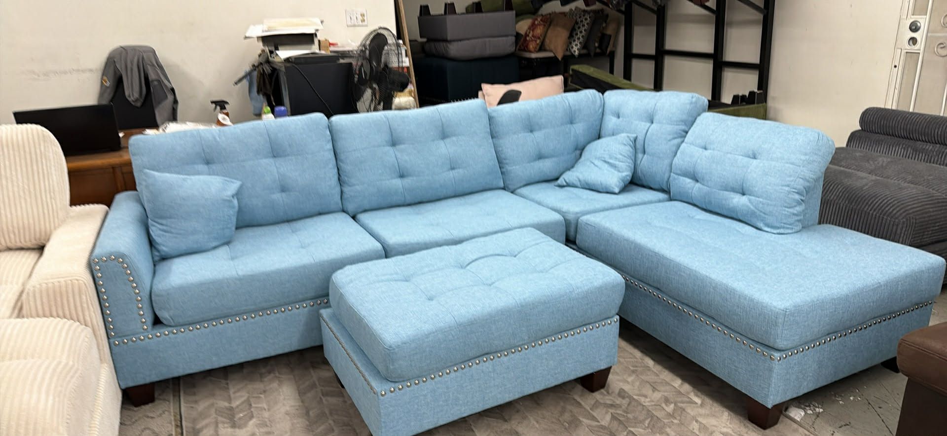 New Sectional Nailhead Couch with Ottoman ! Free Delivery 🚚 !