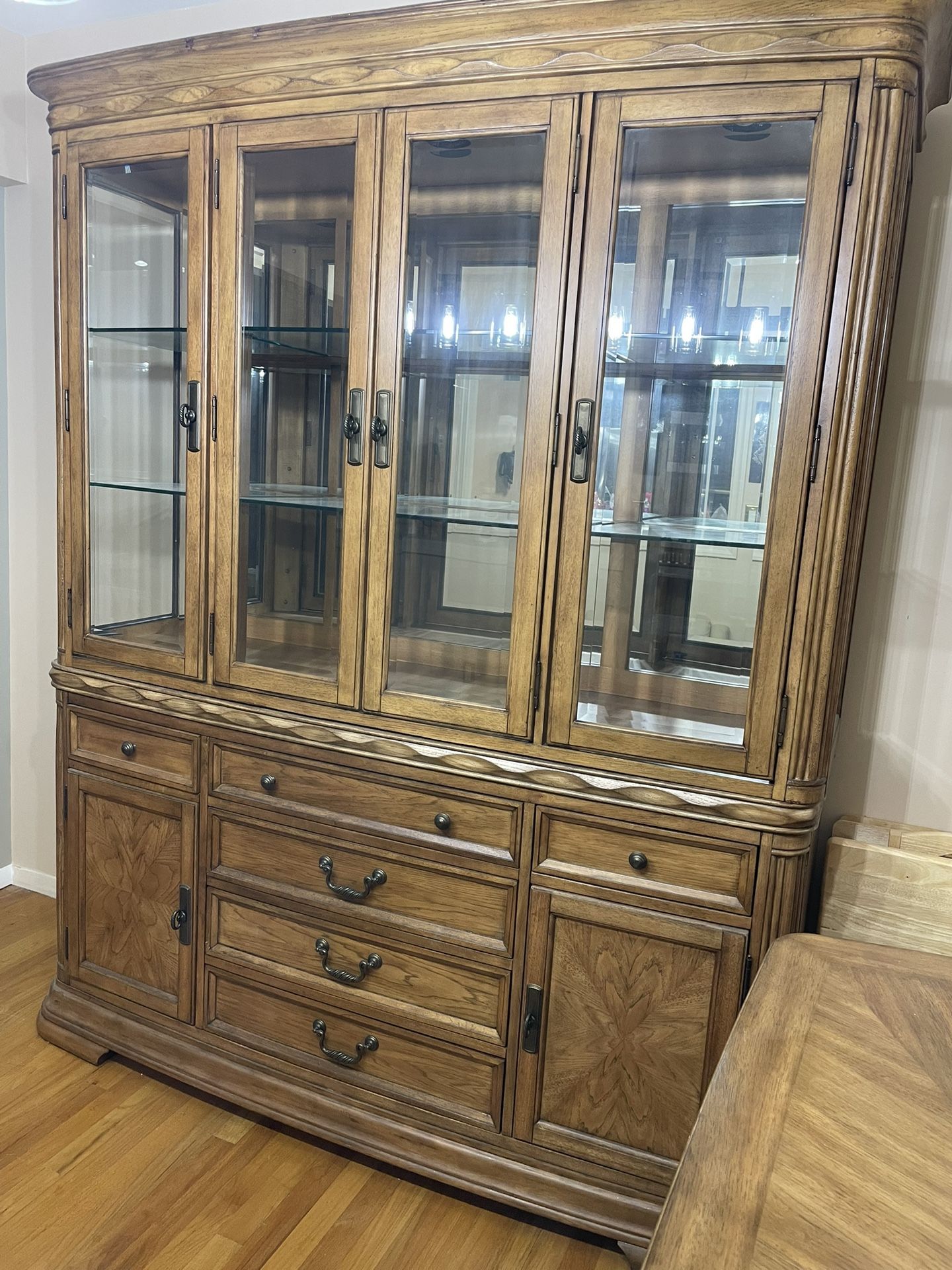 Dining room table 6 chairs and John closet 3500. or best offer table has six chairs with leather and wood table has two extra leaves John Closet does light up inside. Must pick up and Randallstown area.