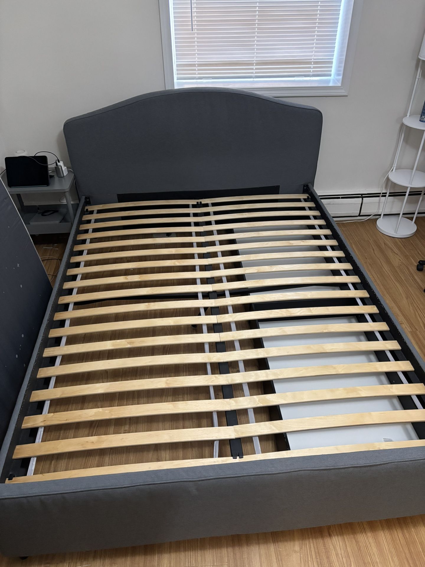Used Queen Ikea Huaga bed frame with drawers for storage. Minor cosmetic damage. I’ve upgraded bed frames and no longer need this one. Can be picked up or delivered. The frame is fully disassembled with all pieces.