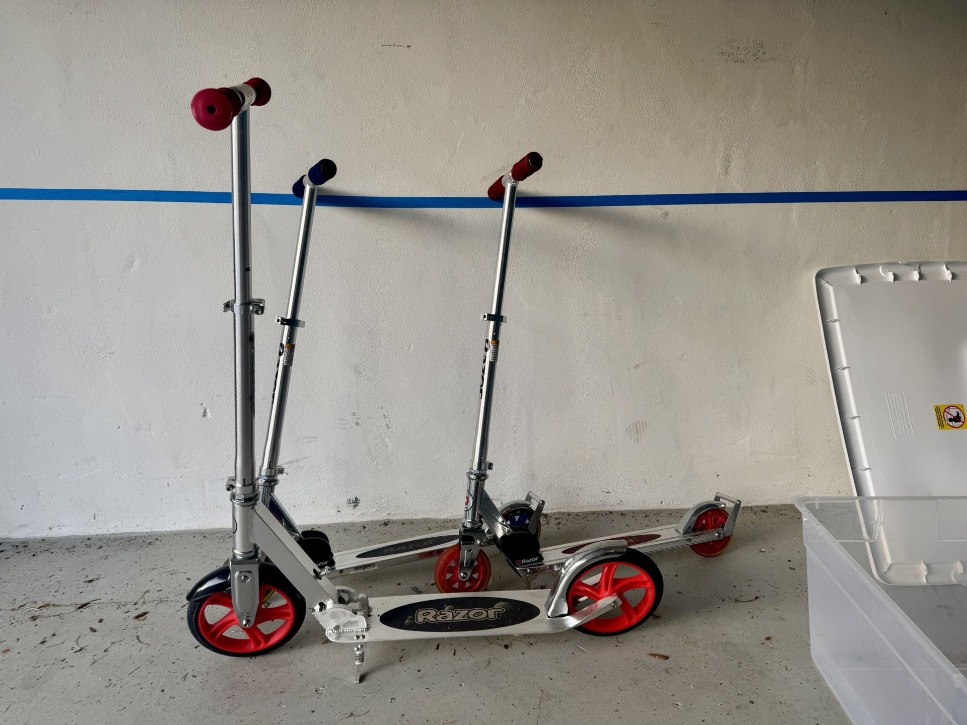 This is for 3 Razor scooters. One red model A5 and 2 model A3 one red and one blue. See Razor specs for these models if you need more details. They are still sold by Razor.
