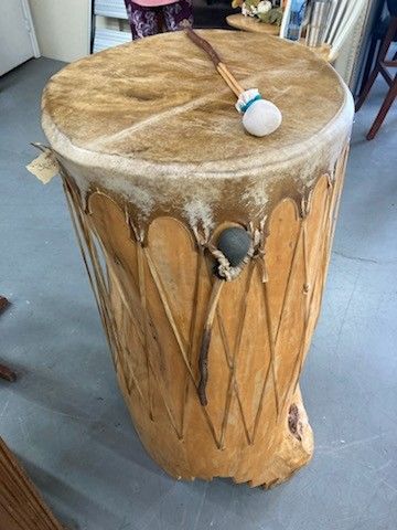 Large Indian Drum animal hide 42" high x 20" high Located in Green Valley, AZ