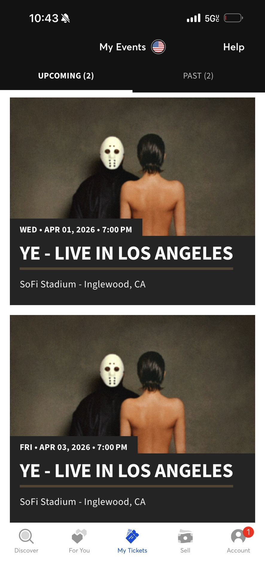 2 tickets available Section 225 Row 2 Seats 11 and 12