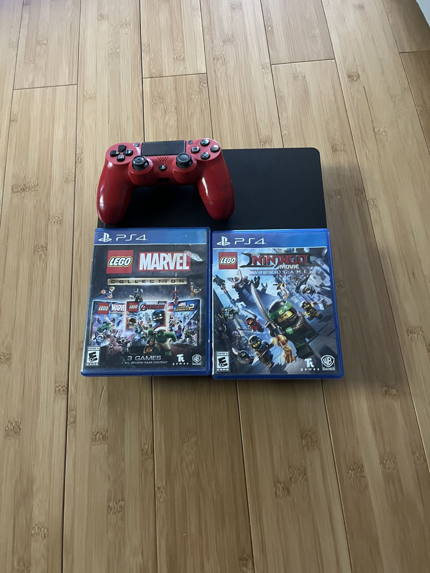 Comes with two games, Lego Ninjago movie game and Marvel collection Lego