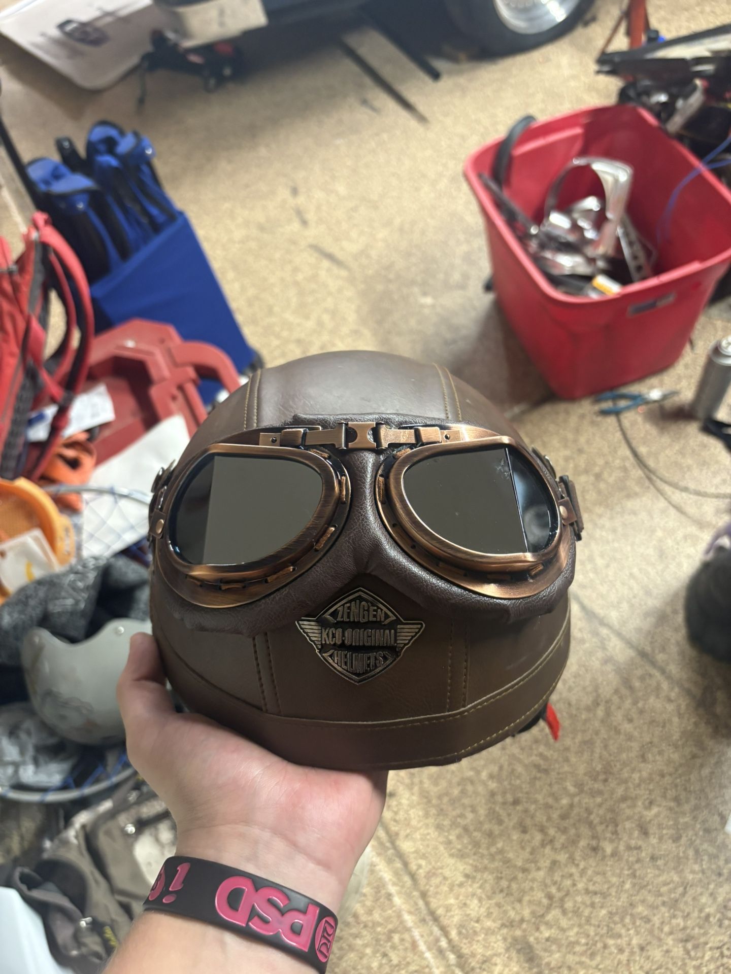 This is a Zengen KCO Original retro-style motorcycle. Has never been in a crash. And worn minimum times. Comes with the helmet with built in tinted visor, goggle, and the zip on and off neck protector. 60obo
