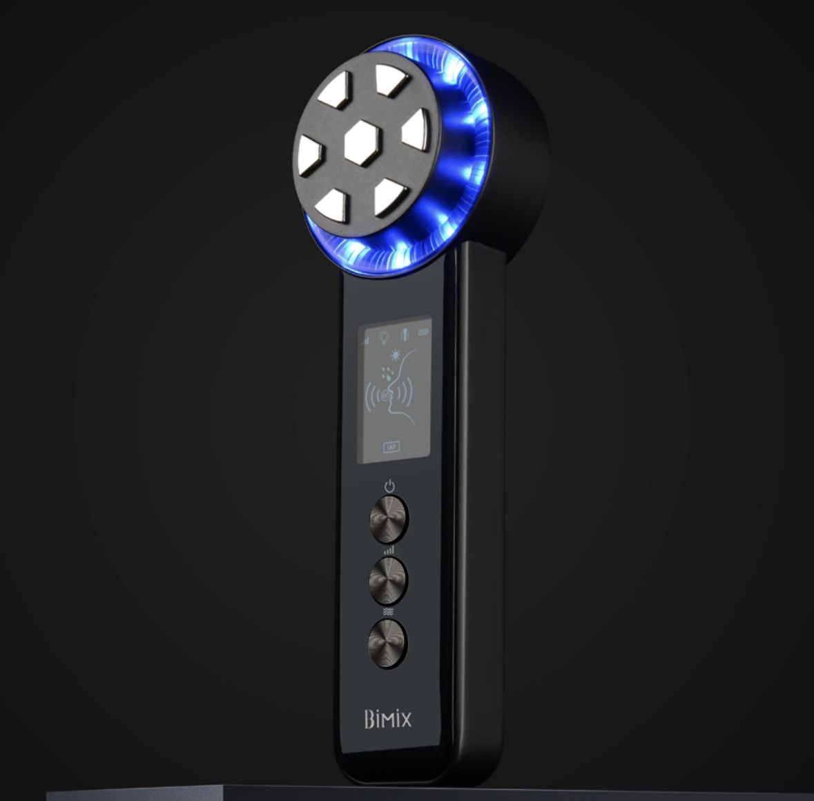 BiMix - RF Beauty Device Equipped with 6 beauty technologies, used for relieving, importing, lifting, cold and hot compress and vibration. With 4 levels of intensity/temperature, effective for multi functions such as reduce fine lines, enhance contours, reduce pores, etc. Combined with luxury appearance design, showing personal taste. 6 beauty modes, effectively reduce fine lines, enhance contours, remove swelling, refine skin, brighten skin tone, and minimize pores. ATW soothing mode: simulate acupressure massage to relieve muscle fatigue. IAP radio frequency import mode: increase the internal temperature of the skin, accelerate the metabolism, promote collagen regeneration, and increase the vitality of the skin. TS lifting mode: Use micro current to gradually stimulate muscle movement to tighten contour and refine skin. Cooling mode: about 17°C, calms the skin, minimize pores, and lock the nutrients. Heating mode: about 39°C/ 41 °C/ 43 °C/ 45 °C, help to open pores, relieve skin fatigue, and enhance nutrient absorption.