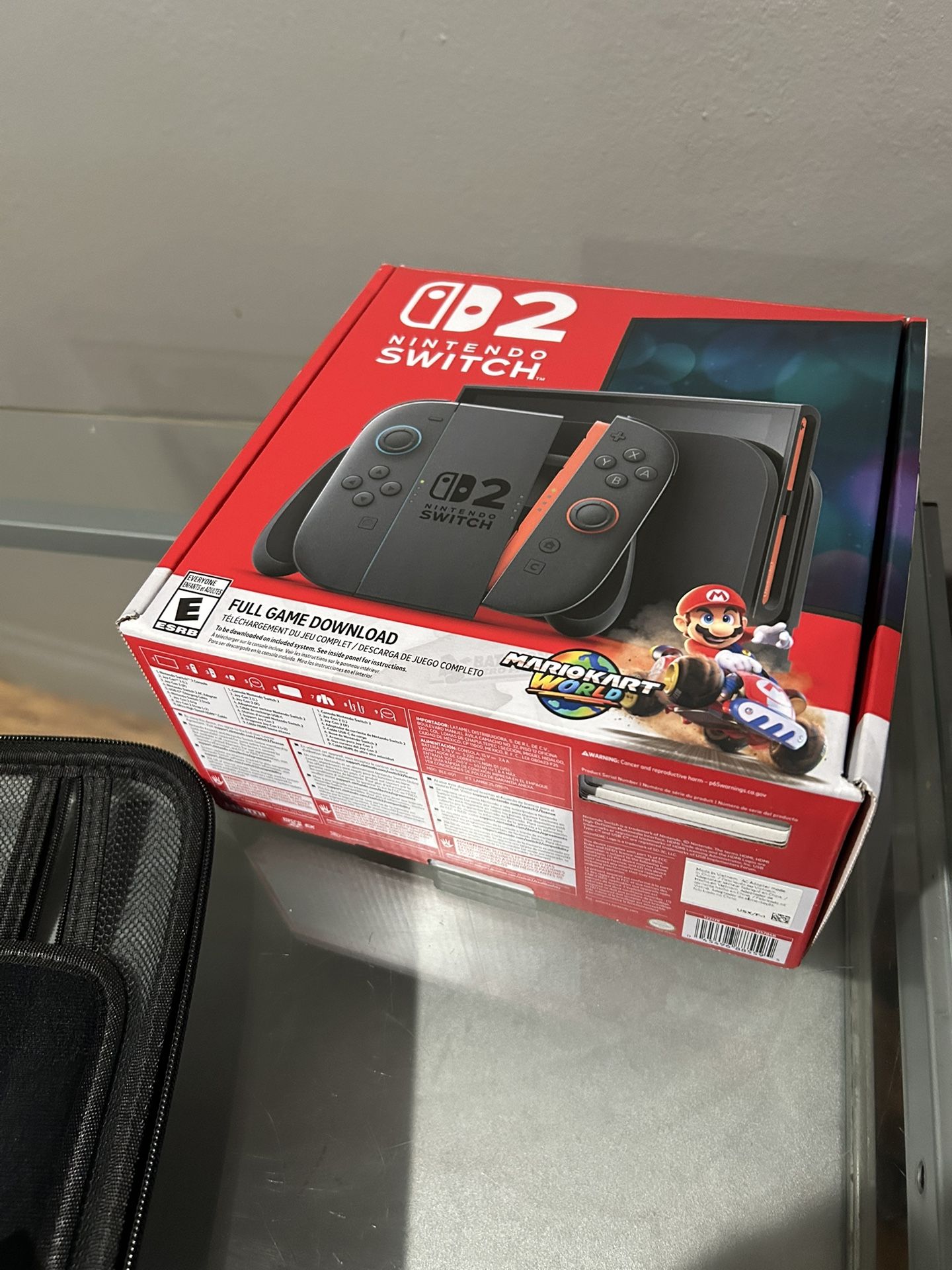 Cosmetic flaw shown on pictures 8, 9, and 10. The grip i was using left a residue on the black plate of the switch 2. I believe it stamped the back of the switch from the heat of the console. Also the matte finish is not the best on the switch 2. I tried to remove the residue with alcohol and it didnt come off. Other than that everything works like new and it comes with everything in box. I also put a screen protector the first day i got it. Will come with the grip as well. Any questions let me know. Video games, Nintendo.
