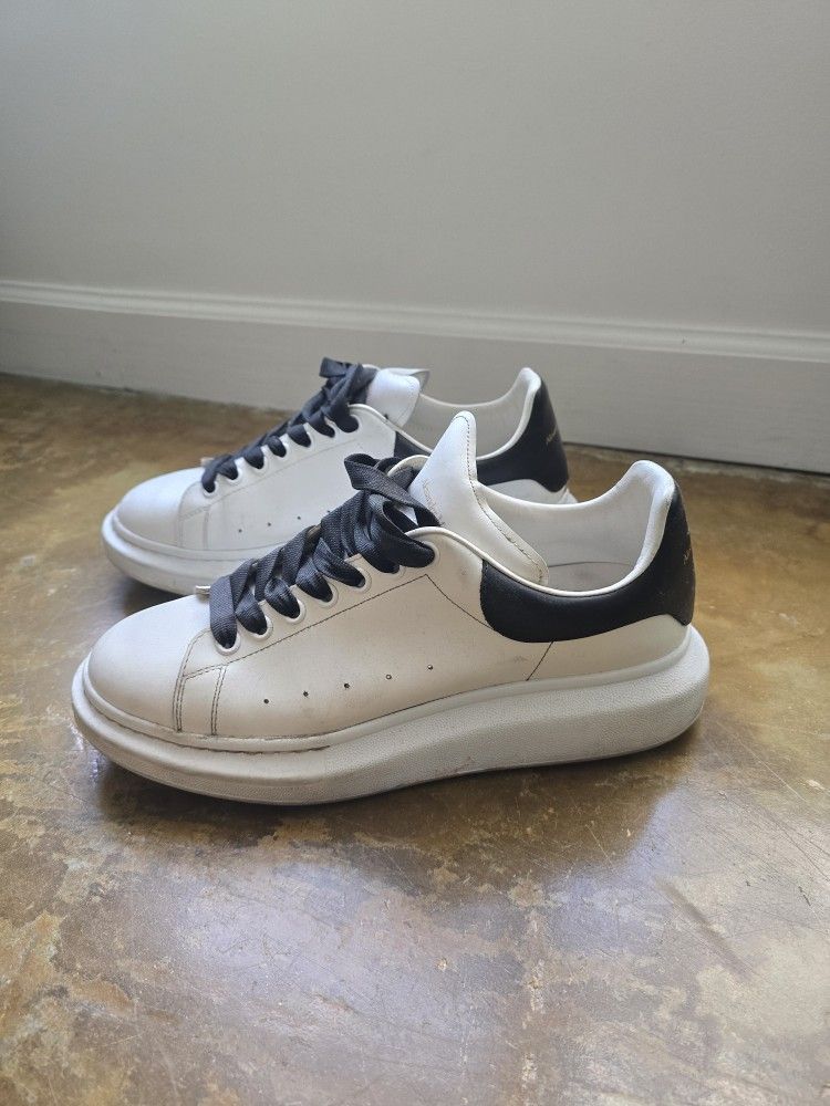 Authentic Alexander McQueen oversized sneakers White leather with black heel tab and black laces Gently used – clean and in great shape Very comfortable and stylish Size: EU 44 / US 10.5 No box, but 100% original