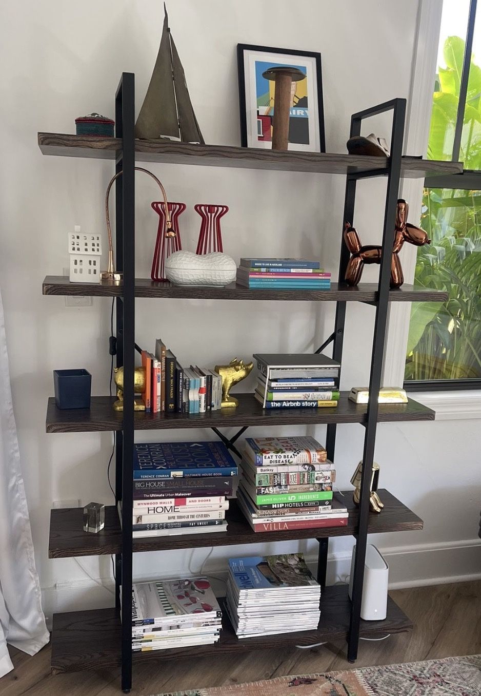 Industrial Bookshelf In Bookcase, Rustic Wood And Metal Five Shelves