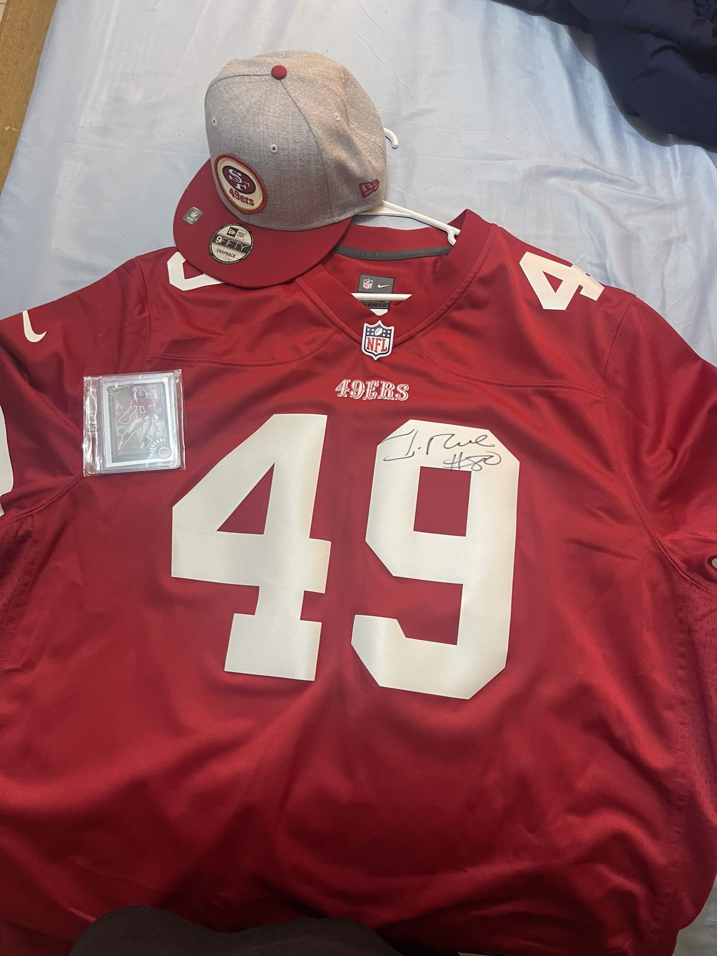 I’am Kyle Rifkin this Is My Custom Jerry Rice autographed Halftime Show Jersey. I did wear the jersey one time during half time performance with Rob Base best known for “It takes two” on this very game day. I’m selling the combo autographed jersey + football card +game day hat. Comes with NFl card plus Offical game day hat.