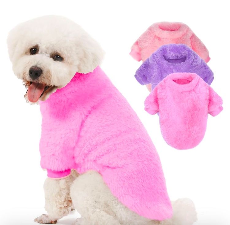 Pack of 3 Dog Sweater Clothes for Small Dogs Boy and Girl Dog Sweaters XS Dog Coat Puppy Cat Apparel Winter Clothes Velvet Sweatshirt (Medium, Orchid,
