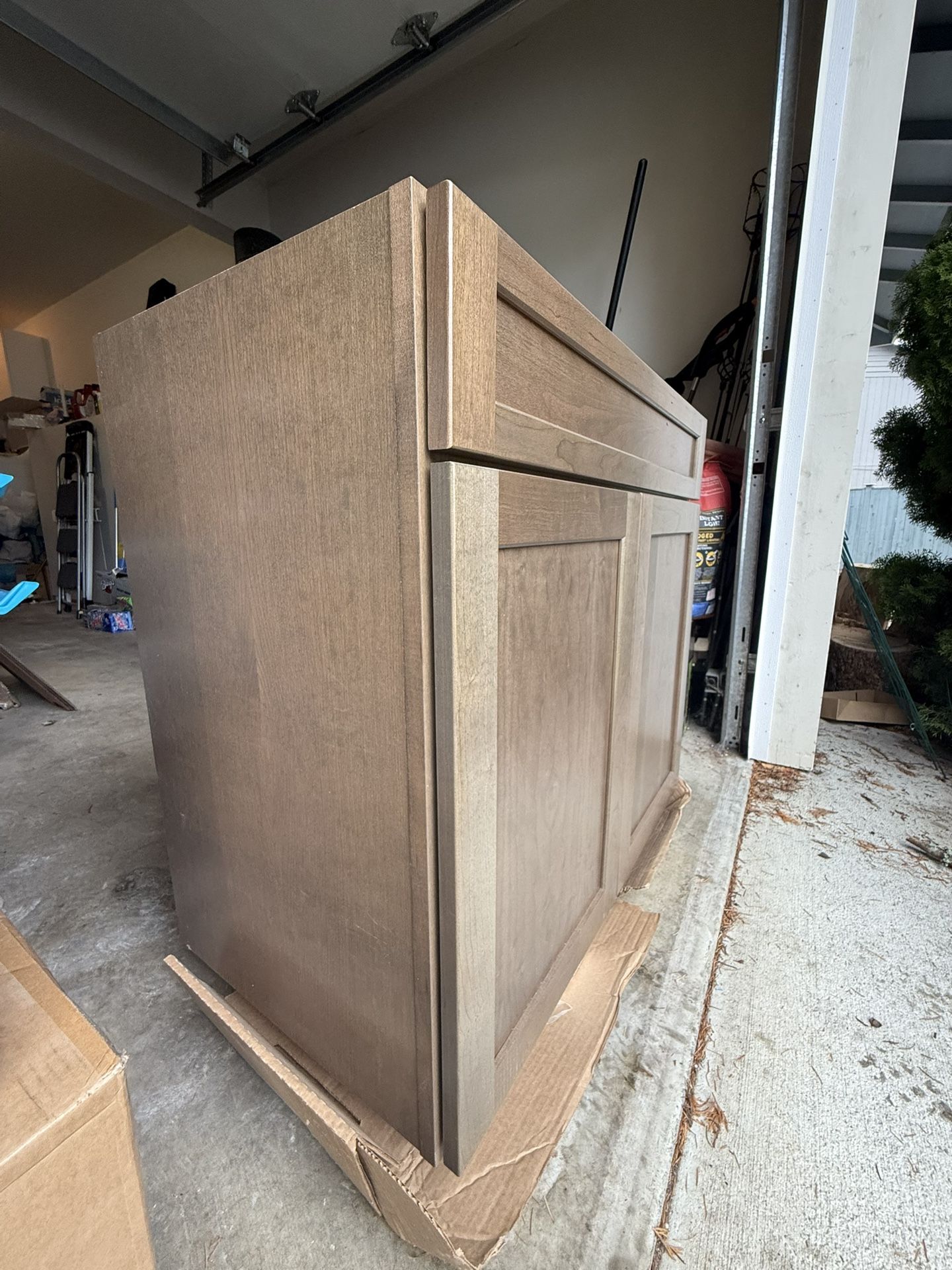Upgrade any room or open space instantly with this brand-new, never-installed solid wood cabinet. Built with quality craftsmanship and a clean modern Shaker design, this piece fits perfectly in any remodel or new install. ✔️ Solid wood construction (not cheap particle board) ✔️ Beautiful warm-brown finish ✔️ Shaker doors – timeless, modern, and clean ✔️ Soft-close hinges (if correct—adjust if not) ✔️ Perfect for bathroom, laundry room, or storage use ✔️ Brand new – only removed from packaging for pictures Dimensions: • Approx. 36” wide This cabinet is in flawless condition and ready to install. Save money compared to big-box store prices — this quality normally goes for $350–$600 depending on the retailer. Pickup only. First come, first served. $300 but willing to negotiate slightly