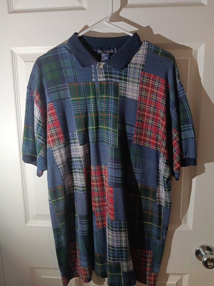 Vintage 90s NAUTICA Plaid Patches Pattern Made In HONG KONG