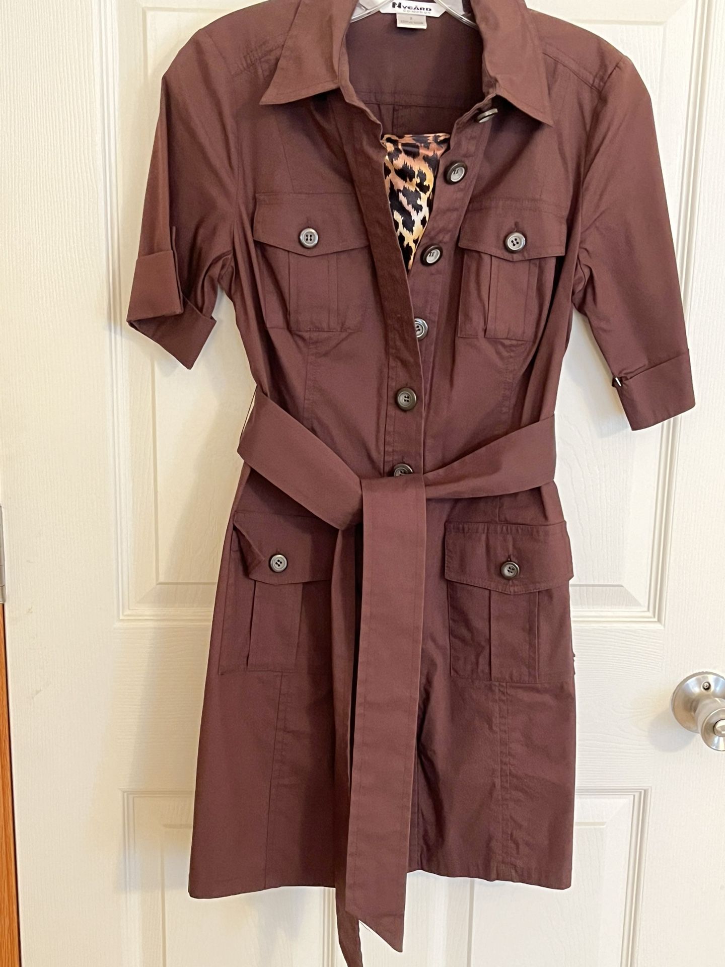 Macys NYC Size 2 Brown button down front with matching belt Matching under slip dress