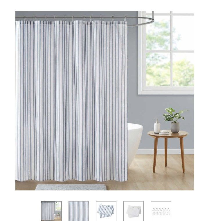 Completely elevate the aesthetic of your bathroom with this Martha Stewart 3-piece Shower Curtain Set. The set includes a printed shower curtain on a textured cloth that looks and feels luxurious. The 12 stainless steel roller ball hooks paired with the thick liner speaks to the quality that Martha Stewart represents. The purchase of this coordinated set makes decorating your bathroom simple and easy and the timeless style will be relevant for years to come! Features: Beautiful textured upscale designs 160 gsm printed textural microfiber shower curtain 6 gauge liner includes 12 grommets for hanging and 3 magnet weights 12 rust resistant stainless steel double sided roller ball hooks included OEKO-TEX Certified Content: Shower Curtain is 100% polyester Liner is 100% PEVA with 3 magnets Hooks are stainless steel Dimensions: 72"L x 0"W x 72" H