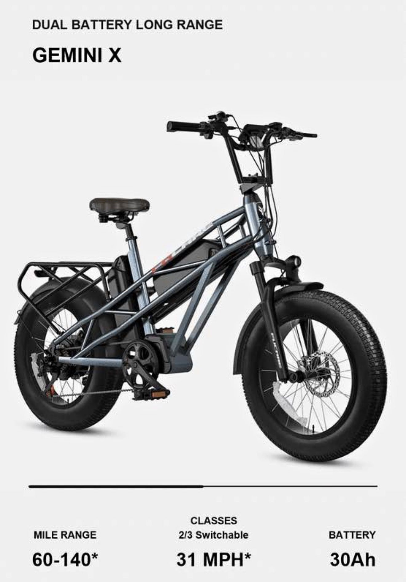 Fucare Gemini X Dual Battery Electric Bike 31MPH-RANGE 60-120 MILES
