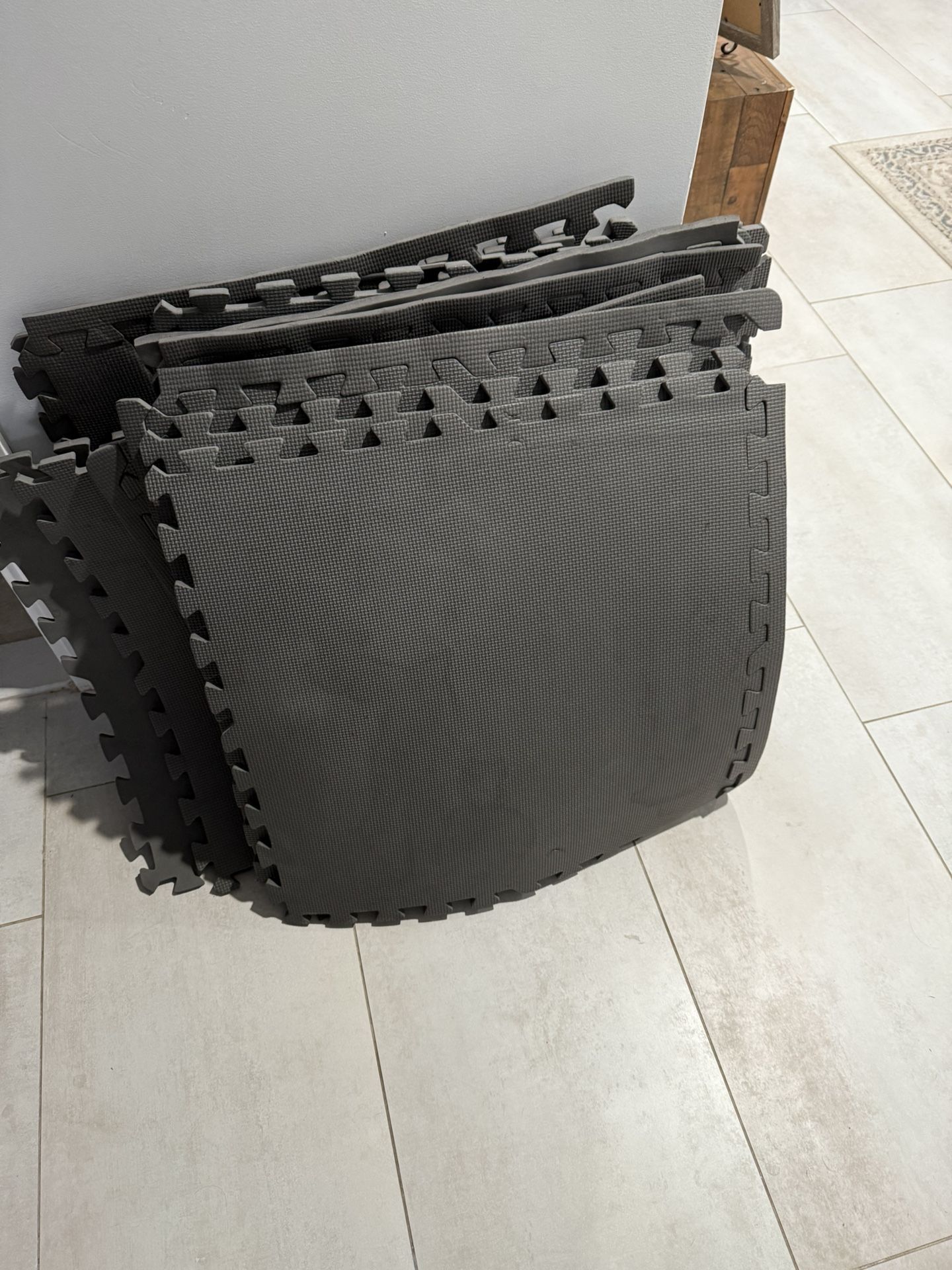 Padded floor squares Comes with fisished edges Each square is 24x24 Have 14 total Must buy all