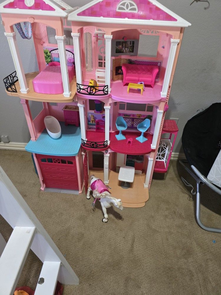 3 story Barbie dreamhouse and large Barbie horse.