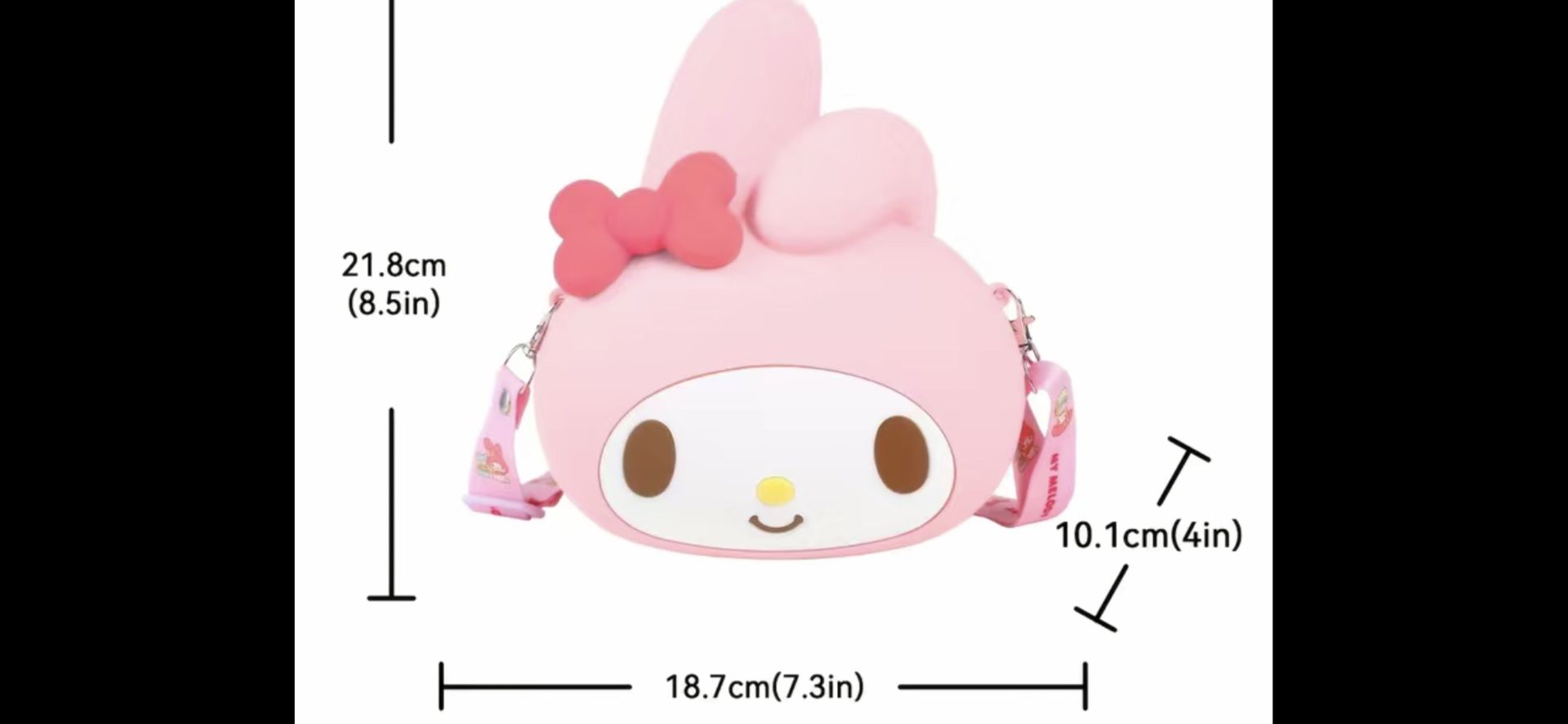 Kawaii Sanrio My Melody Design Bag, Trendy Zipper Shoulder Bag, Silicone Crossbody Purse With Detachable Strap