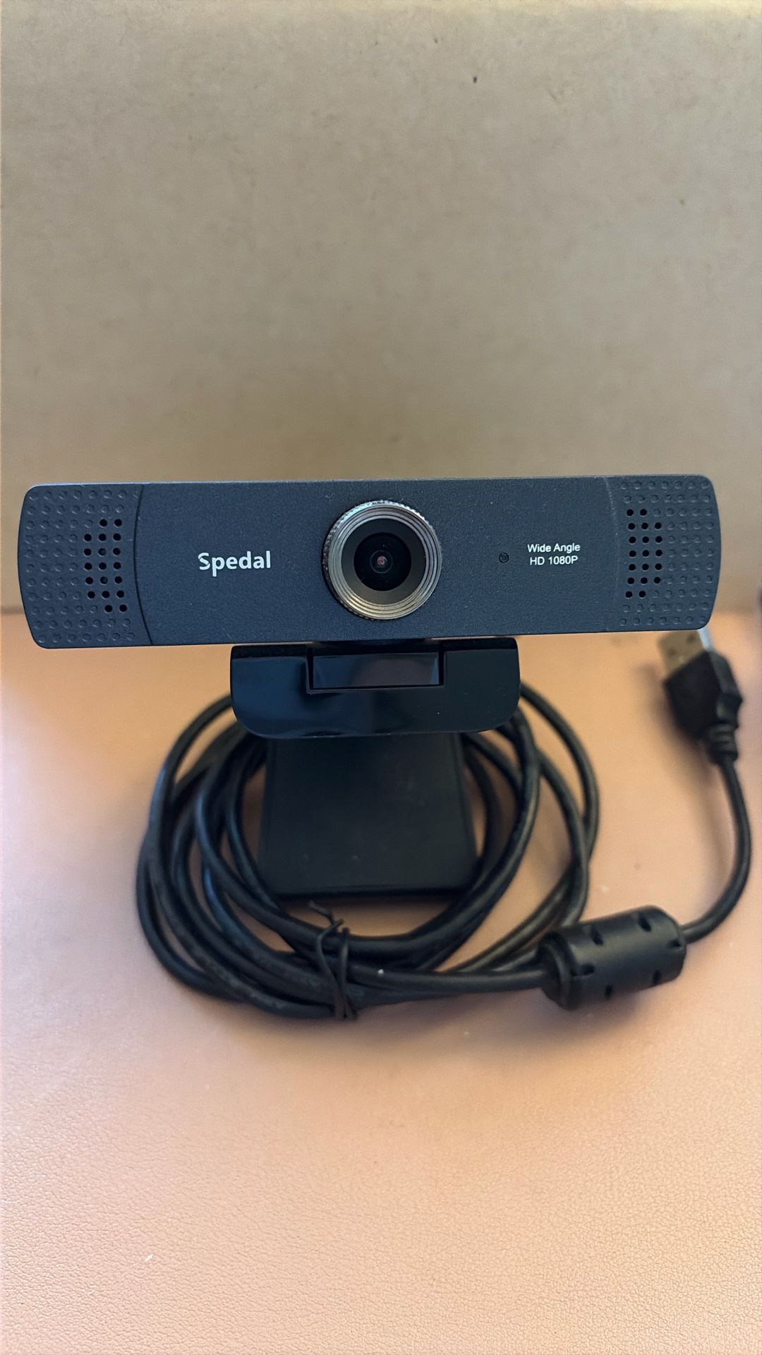 Working, in Great condition Connects via USB-A 1080P Wide Angle Spedal MF830 Built-in stereo microphones with noise reduction. 90° Wide Angle Webcam:90° wide Field Angle combined with 1/2.9”CMOS image sensor and manual focus providing more stable and clearer. Fast Installation and Convenient Use:Clip the webcam onto the computer monitor or laptop screen, or have it stand on your desk or any flat surfaces.
