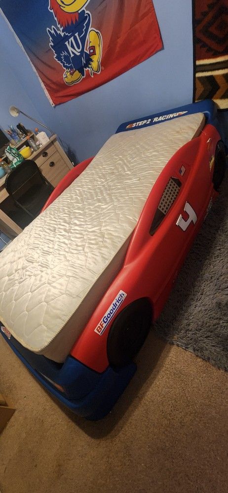 Bed can be used as a toddler Bed or twin bed. Some stickers are peeling off, but can easily be replaced with stickers of your choice.