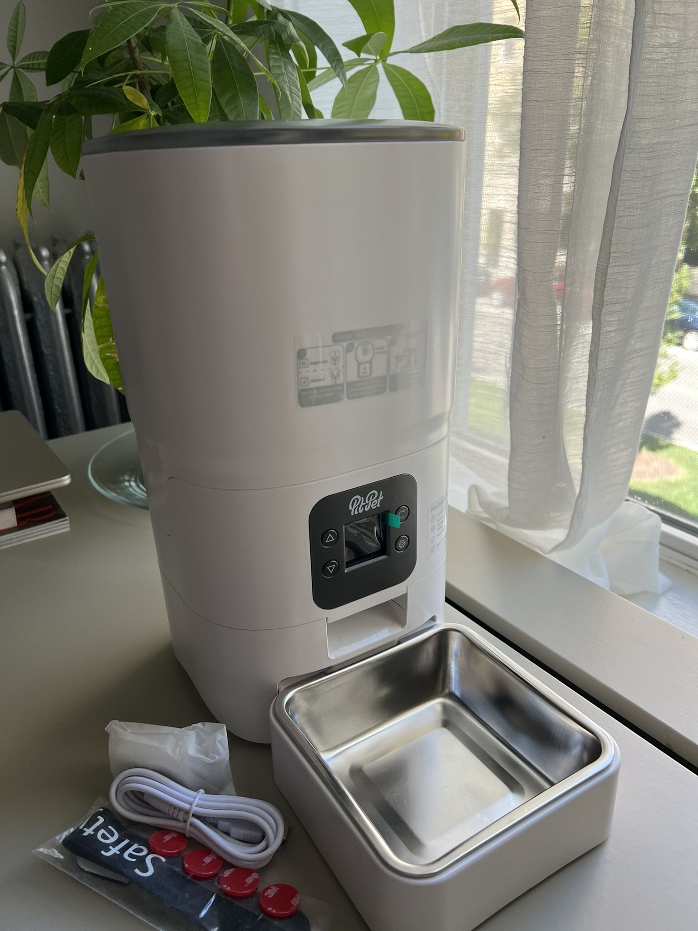 It was a gift for Christmas but we already had a feeder for our cat. So pick it up if you’d like. I don’t have the box.