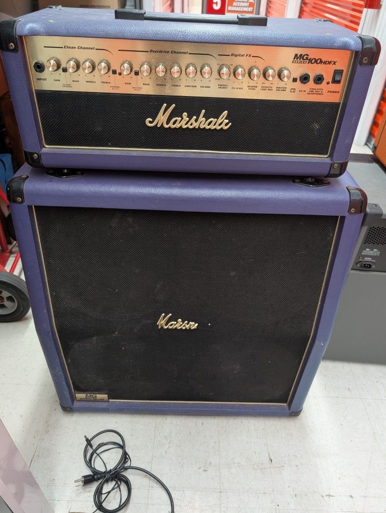 Marshall mg100fx half stack in special edition purple up for sale. Works great. With built in effects and multi voiced drives it is a tone monster. Loud enough to cut through the mix live but has direct out to serve you well in the studio. Fantastic solid state amp that I have used in both live and home settings $450 negotiable Text James at (contact info removed)