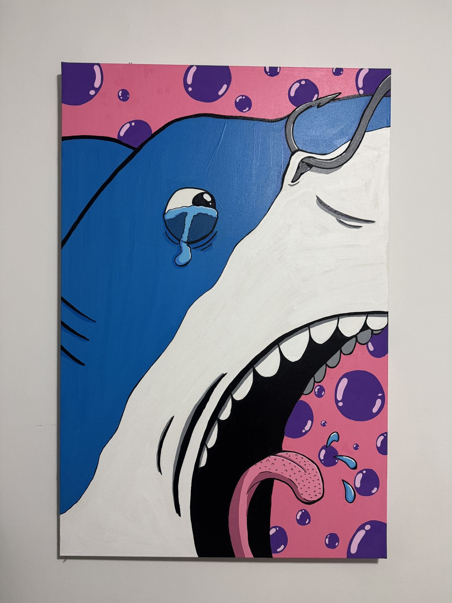 "Sebastian" 2024 by Marko Kocic @justverti Acrylic paint and Posca paint markers on 24" x 36" canvas Must be able to pick up in Carroll Gardens, Brooklyn.