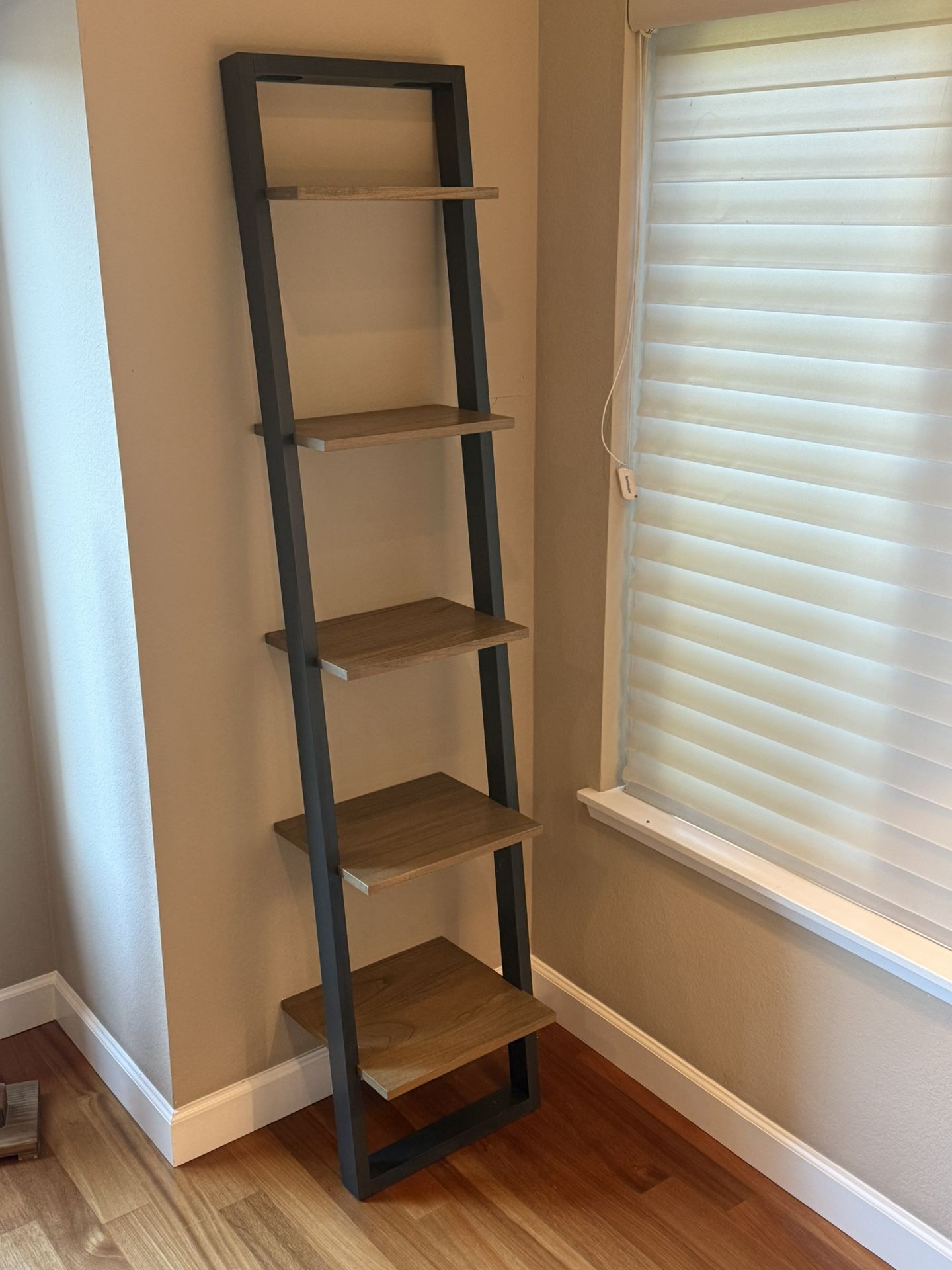 Ladder Shelf (2) Color: Sand/Stone; wood Purchased new $199 each 77” height x 17” wide