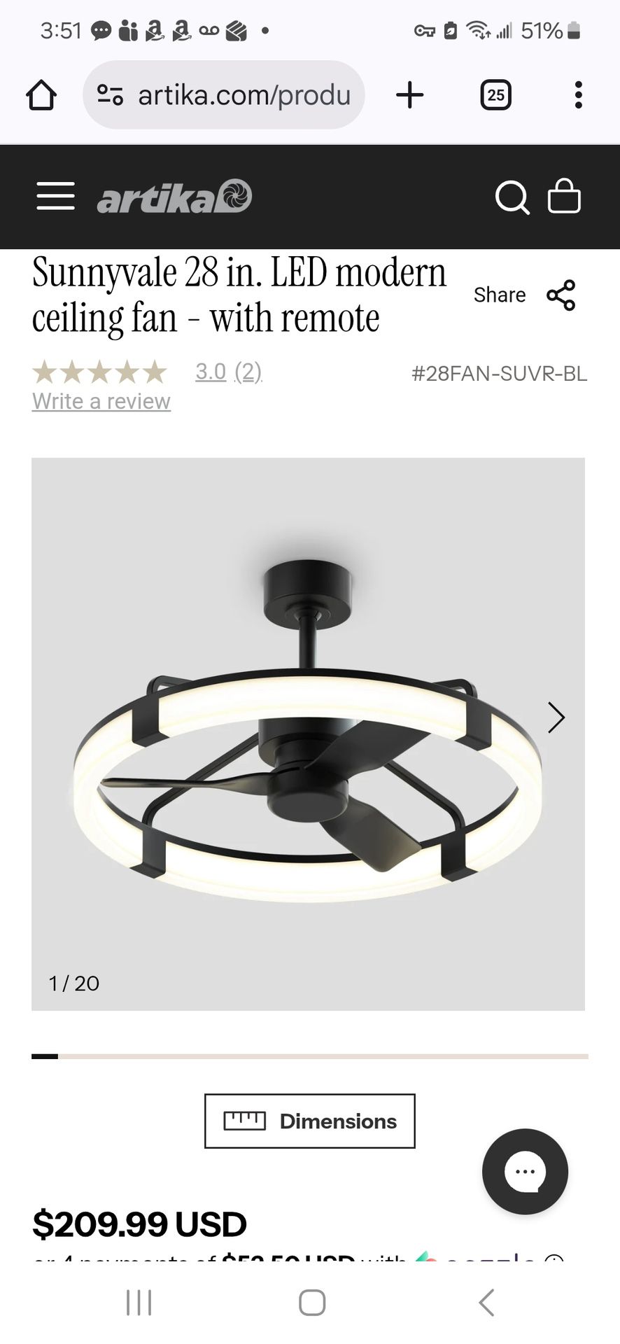 Artika Sunnyvale 28” Fandelier | LED Light + Ceiling Fan Upgrade your space with the perfect blend of modern lighting and efficient air circulation. The Artika Sunnyvale 28” Fandelier delivers sleek design with powerful performance—ideal for living rooms, bedrooms, and more. ✔ 28” diameter ✔ Integrated LED light + ceiling fan ✔ High-quality, quiet motor ✔ Dimmable lighting ✔ Remote control included 🆕 Brand new, in the box 🔁 Guaranteed exchange if you’re not satisfied — no questions asked.