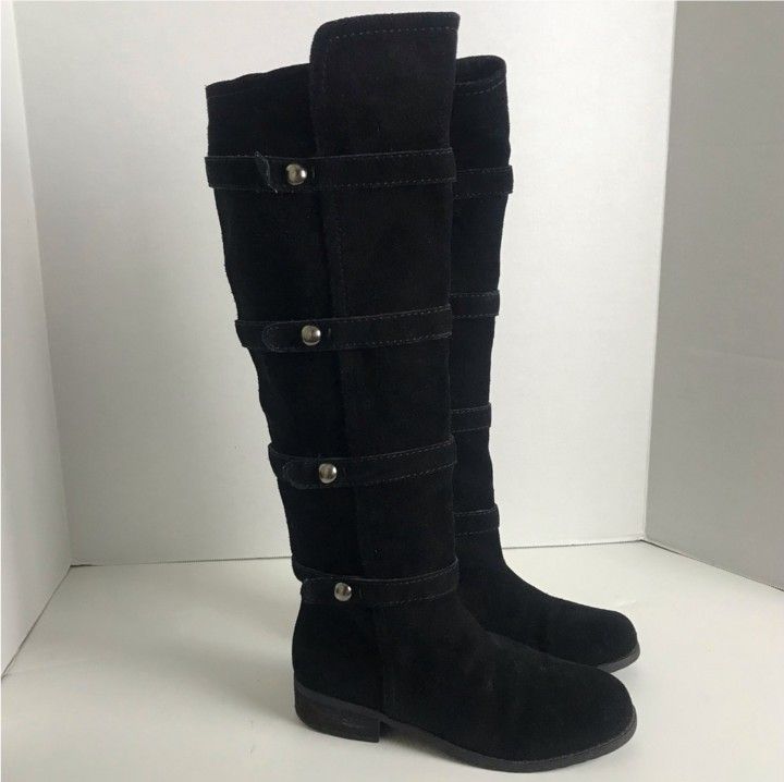 BCBGeneration Black Suede Studded Pull On Low Heel High Boots