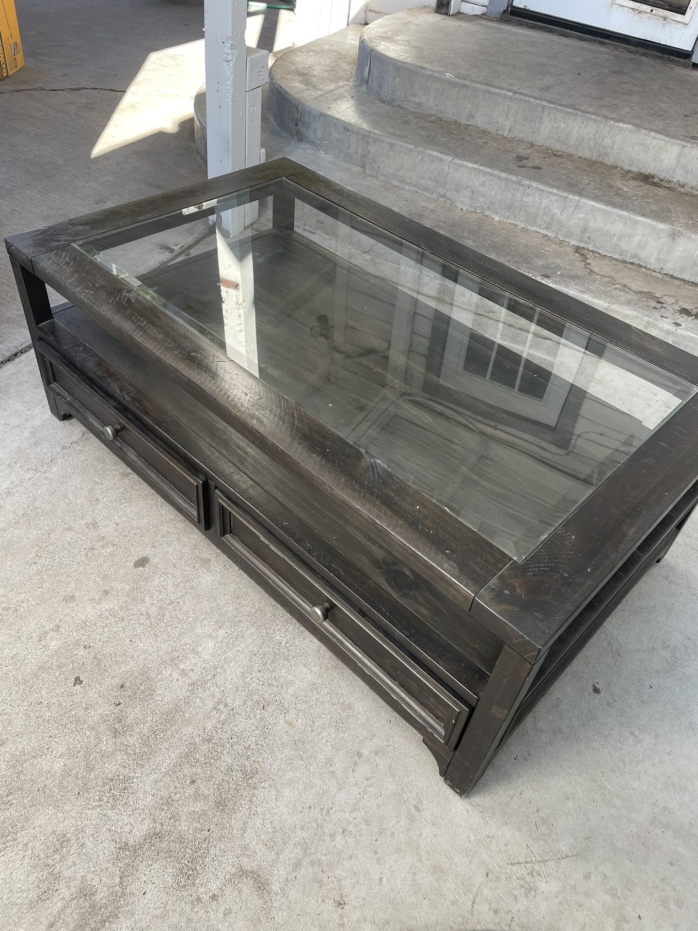 Rustic wood coffee table for sale. Has few dings and scratches but is otherwise in really good condition.