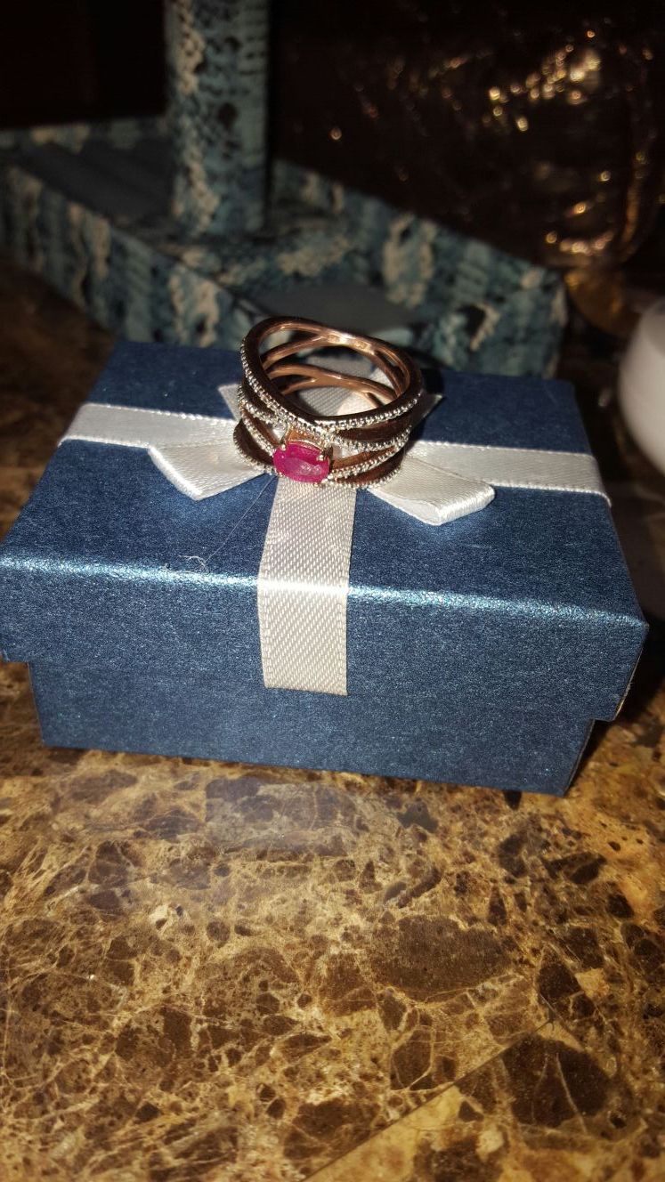 Gorgeous, luxury ring with the real Niassa Ruby, Dimond accent, 14 k RG Overlay over solid Sterling Silver Nickel Free, high quality made in India. Size 8,5