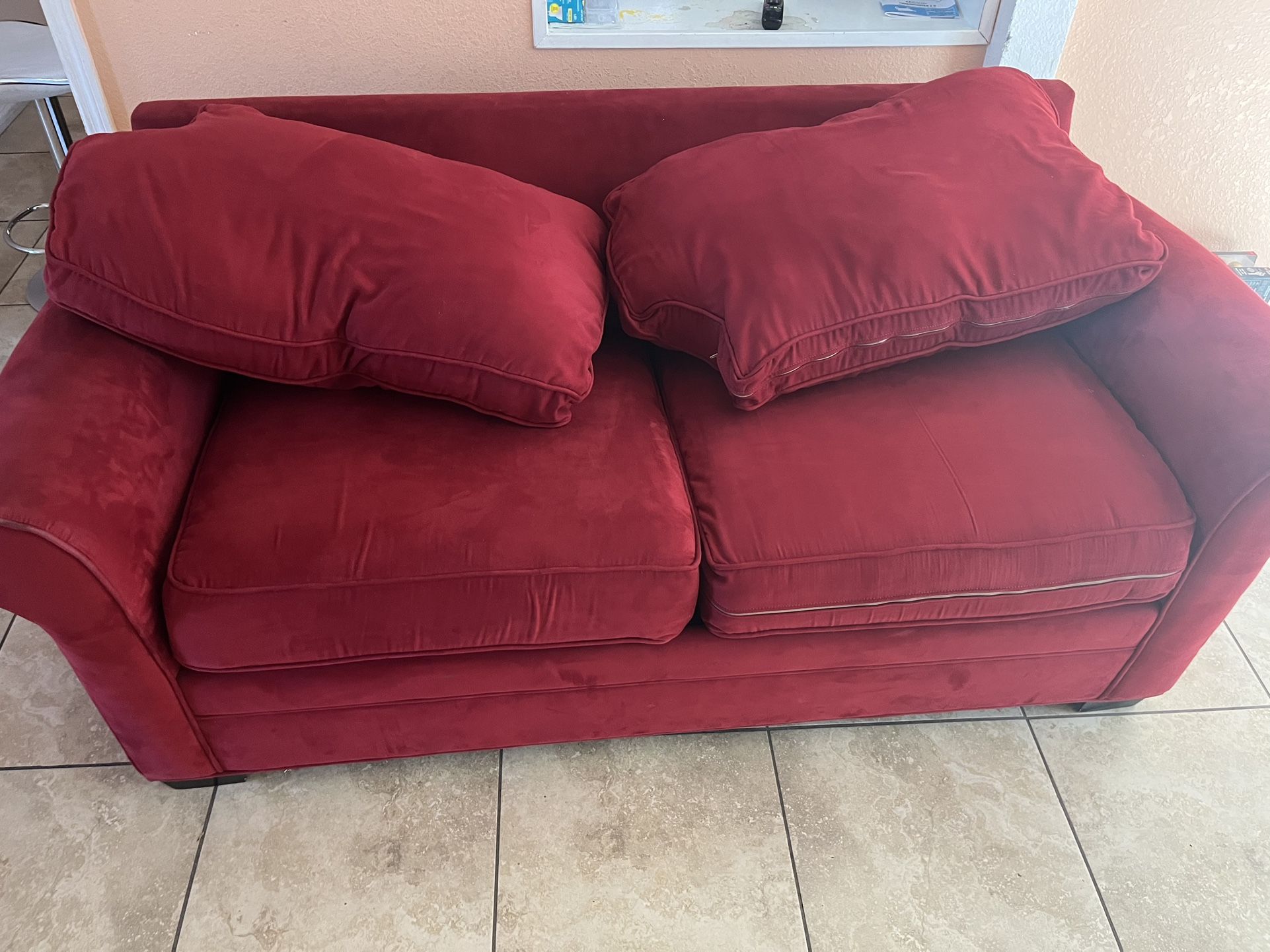 Red loveseat sleeper sofa for sale Red Sofa Bed in Good Condition + Mattress