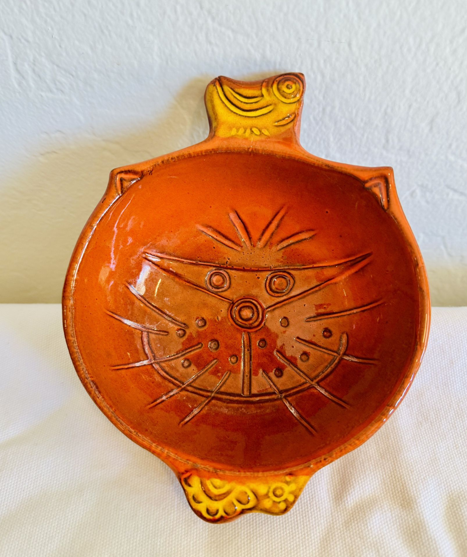 vintage 1967 Pacific Stoneware "People Lovers" cat dish, designed by B. Welsh